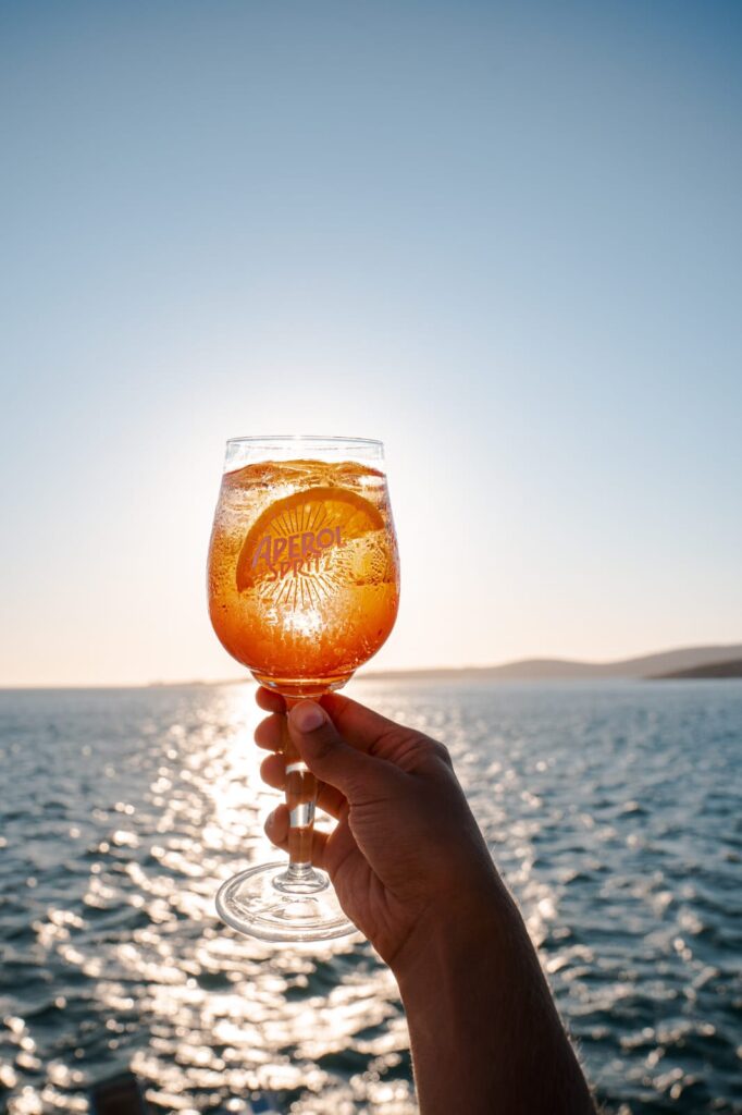 Sipping an Aperol Spritz as the sun slowly disappears into the sea.